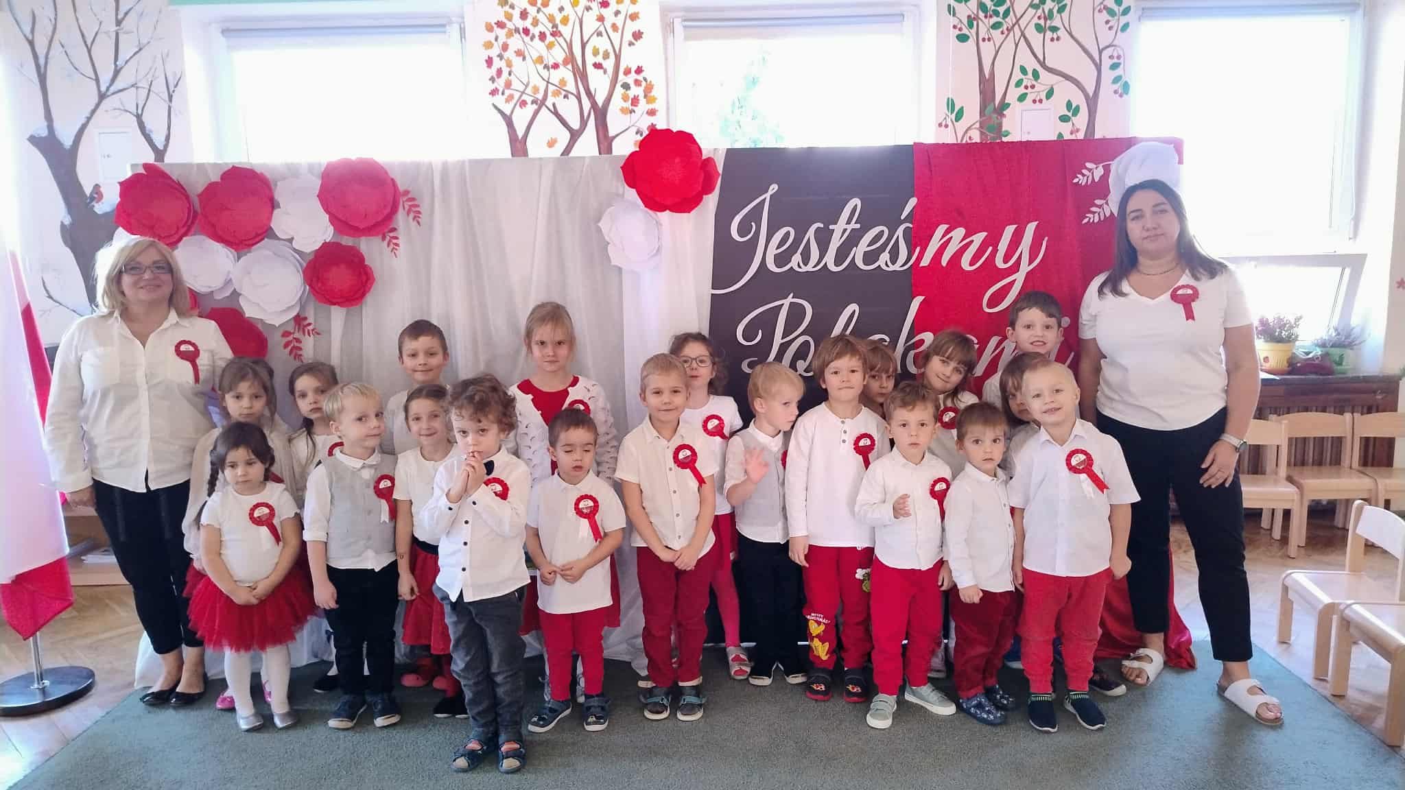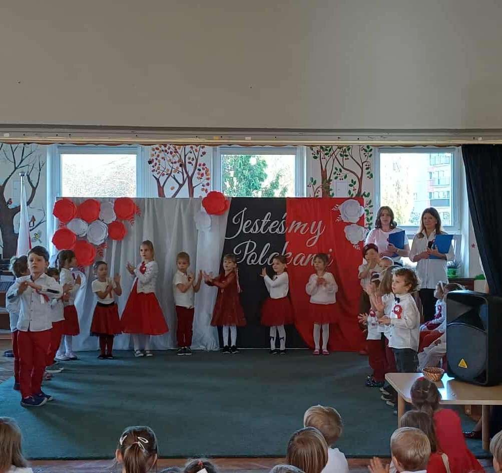 Dnia 7 listopada w naszym przedszkolu uroczyście obchodziliśmy Narodowe Święto Niepodległości. Z tej okazji dzieci wzięły udział w przeglądzie recytatorskim pt.: "Jesteśmy Polakami", podczas którego z dumą prezentowały wiersze o tematyce patriotycznej. Nie zabrakło również muzycznych akcentów – swoje umiejętności zaprezentowały dzieci z koła muzycznego, które przygotowały wzruszające występy z piosenkami o Ojczyźnie. Cała społeczność przedszkolna wspólnie odśpiewała cztery zwrotki hymnu narodowego, oddając hołd Polsce i jej bohaterom.