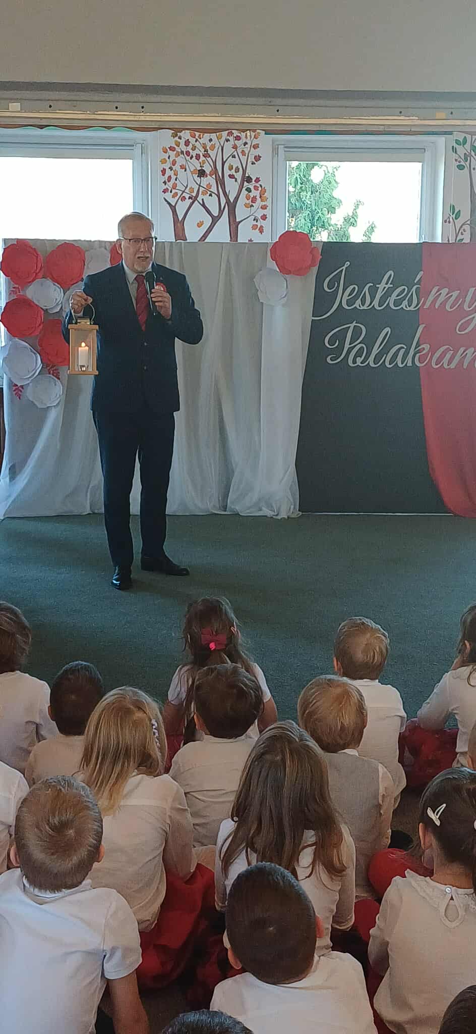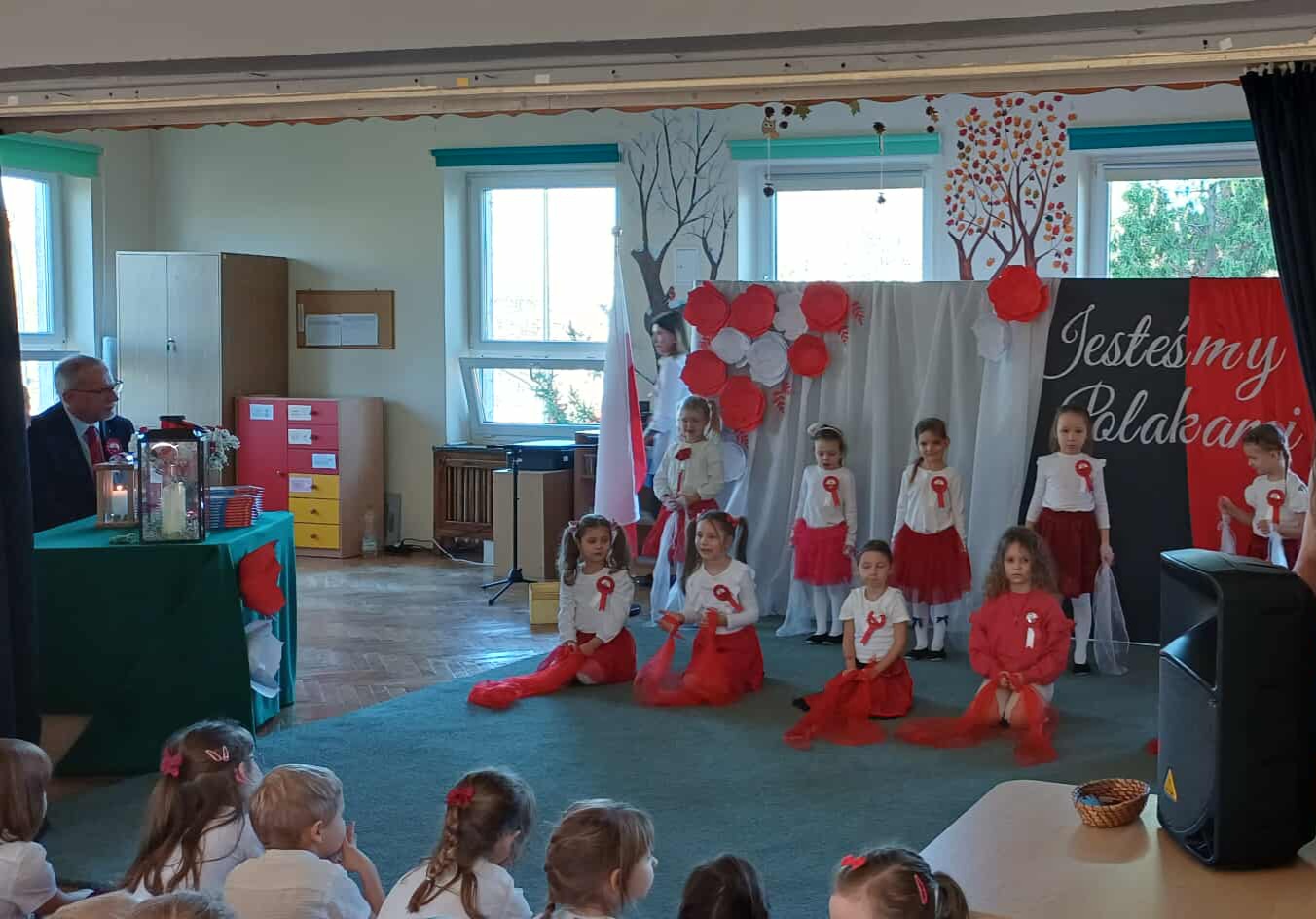 Uroczystość swoją obecnością uświetnił Łódzki Wicekurator Oświaty Pan Jarosław Krajewski, który pogratulował dzieciom pięknych występów i podkreślił znaczenie kształtowania postaw patriotycznych już od najmłodszych lat, a także przekazał naszemu przedszkolu symboliczny Ogień Niepodległości – znak pamięci, jedności i miłości do Ojczyzny.